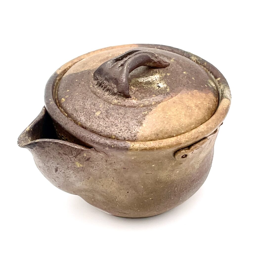 今回お持ちいただいた高原敏先生の備前焼の宝瓶は、氏の作風がよく表れた素晴らしい一点でした。特に、自然釉の景色が非常に美しく、お茶を淹れる喜びを感じさせる作品です。