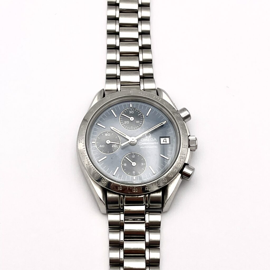 モデルの需要: スピードマスターはオメガの定番であり、特にデイト機能を持つモデルは日常使いしやすく、中古市場でも人気があります。3511.80のブルー文字盤は、その中でも特に評価が高い色です。