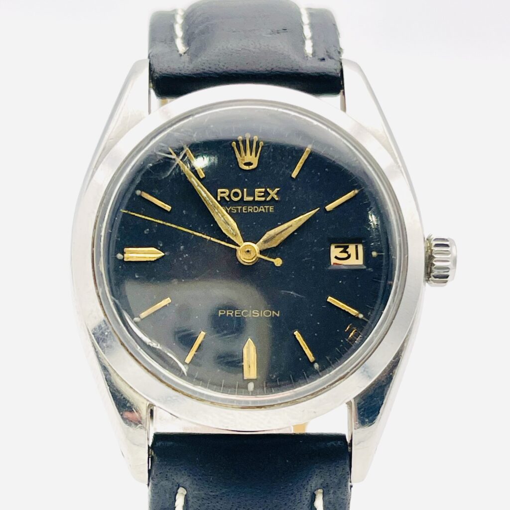 こちらの手巻きオイスターデイトは、ブレスレットは社外品に交換され、ケースや風防に使用に伴う小傷も見られましたが、アンティークロレックスは実用的なヴィンテージウォッチとして大変人気が高く、状態よりも希少性が評価されます。